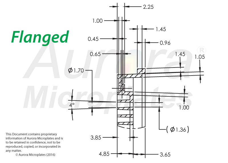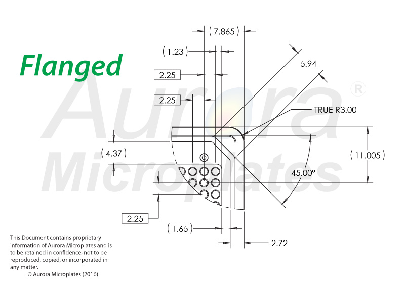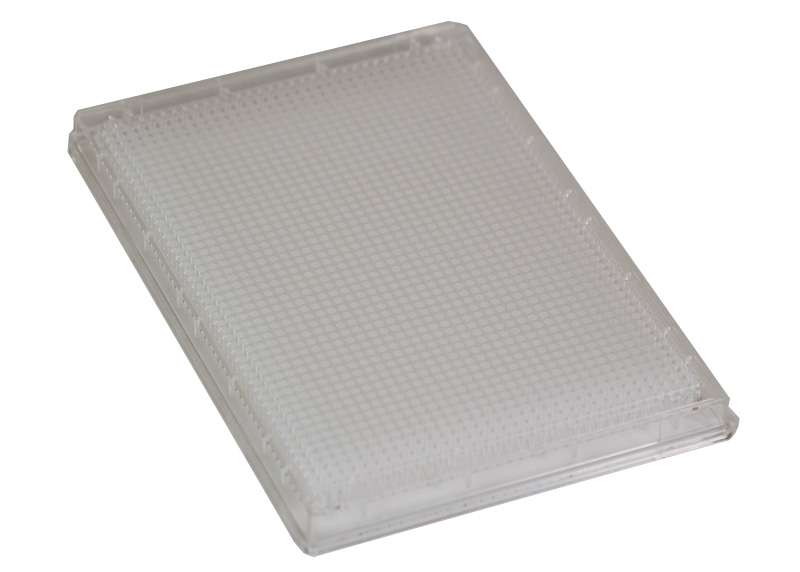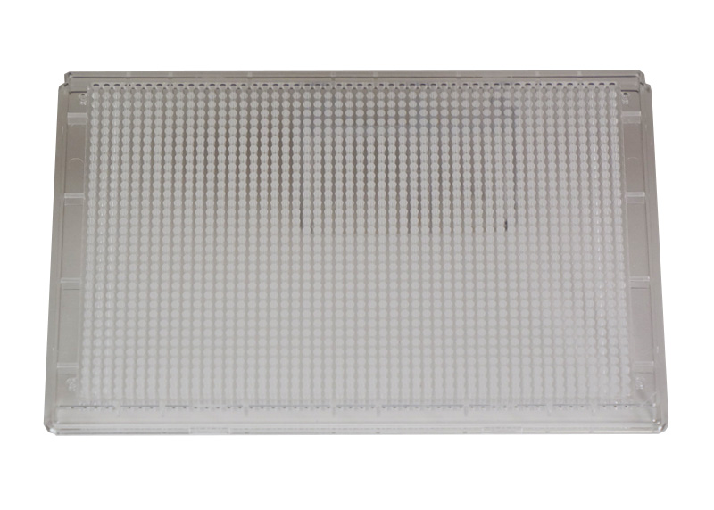1536 Well MaKO plates are available in Black, White or Clear with solid-bottoms or 100 micron-thick film bottoms. 1536 Well MaKO plates have round wells and a HiBase configuration. 1536 MaKO plates have a built-in Evaporation Barrier (EB) row of wells surrounding the assay well field that can be filled to help prevent differential liquid evaporation from the edge wells. 1536 MaKO have built-in alignment fiducials used in Acoustic Dispensing systems. 1536 MaKO plates are available Tissue-Culture Treated for assays using cells with a small bottom surface area (1.85mm2).. The film-bottom configurations are ideal for fluorescence assays. 1536 Well MaKO plates have low-dead-volume characteristics (total useable volume 8.75μL). All Aurora plates are available with standard or customer bar-coding.